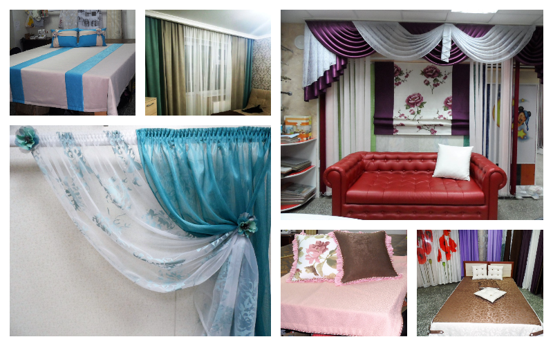 Кроме штор специалисты Салона изготовят под заказ ламбрекены, подушки, покрывала, занавески, скатерти, портьеры. Дополнительно, для удобства наших Клиентов в широком ассортименте карнизы любой конструкторской сложности , а также под заказ -работаем с фирмой по изготовлению рулонных штор,пластиковых, металлических жалюзей на любой вкус.